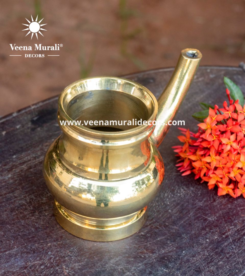 Kindi, usually made of bell metal, is used in pujas to dispense holy water, for washing hands after meals, and for guests to cleanse their feet at the entrance.