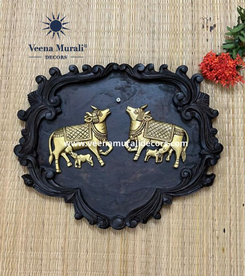 A heartfelt depiction of a cow with her calf, this elegant wall hanging symbolizes nurturing, protection, and divine love. Perfect for adding warmth and cultural charm to your interiors.