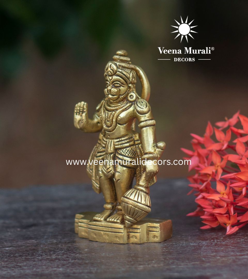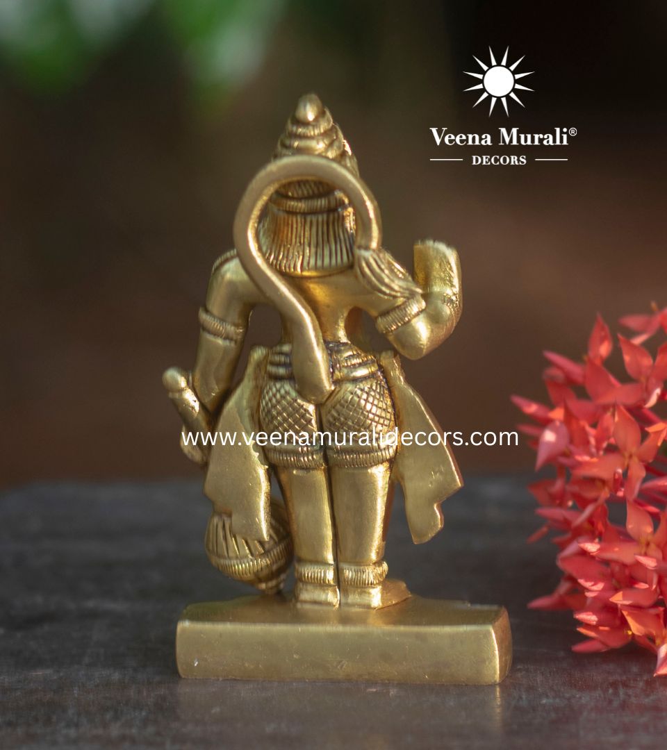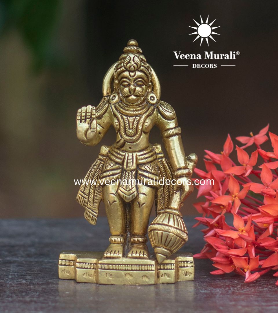 Hanuman 4 Inch Brass Idol, finely handcrafted, symbolizes courage, devotion, and protection. Perfect for pooja altars, sacred spaces, or gifting.