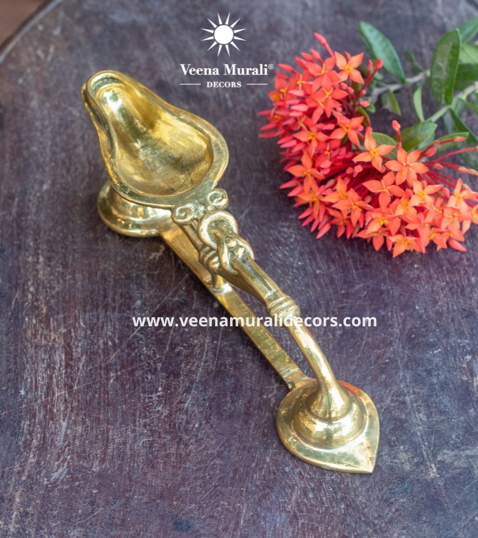 Hand made Kodi vilakku is a traditional brass oil lamp, perfect for pooja and festivals, adding a divine and elegant touch to your space.