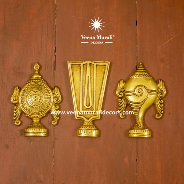 A beautiful piece of shankh chakra namam. Holy symbols designed on brass is an additional decor on your wall/Door.