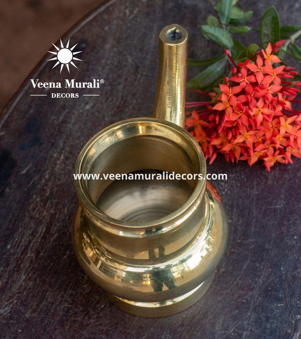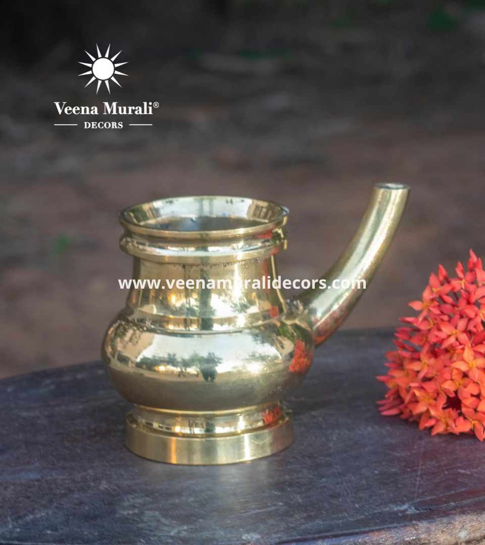 Kindi, usually made of bell metal, is used in pujas to dispense holy water, for washing hands after meals, and for guests to cleanse their feet at the entrance.