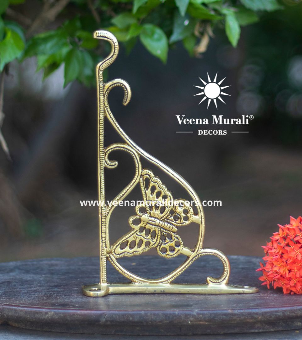 A Butterfly Hanger for hanging brass lamps is a stylish and durable wall hook designed to hold diyas or vilakku safely. Its artistic butterfly design enhances both traditional and modern interiors.