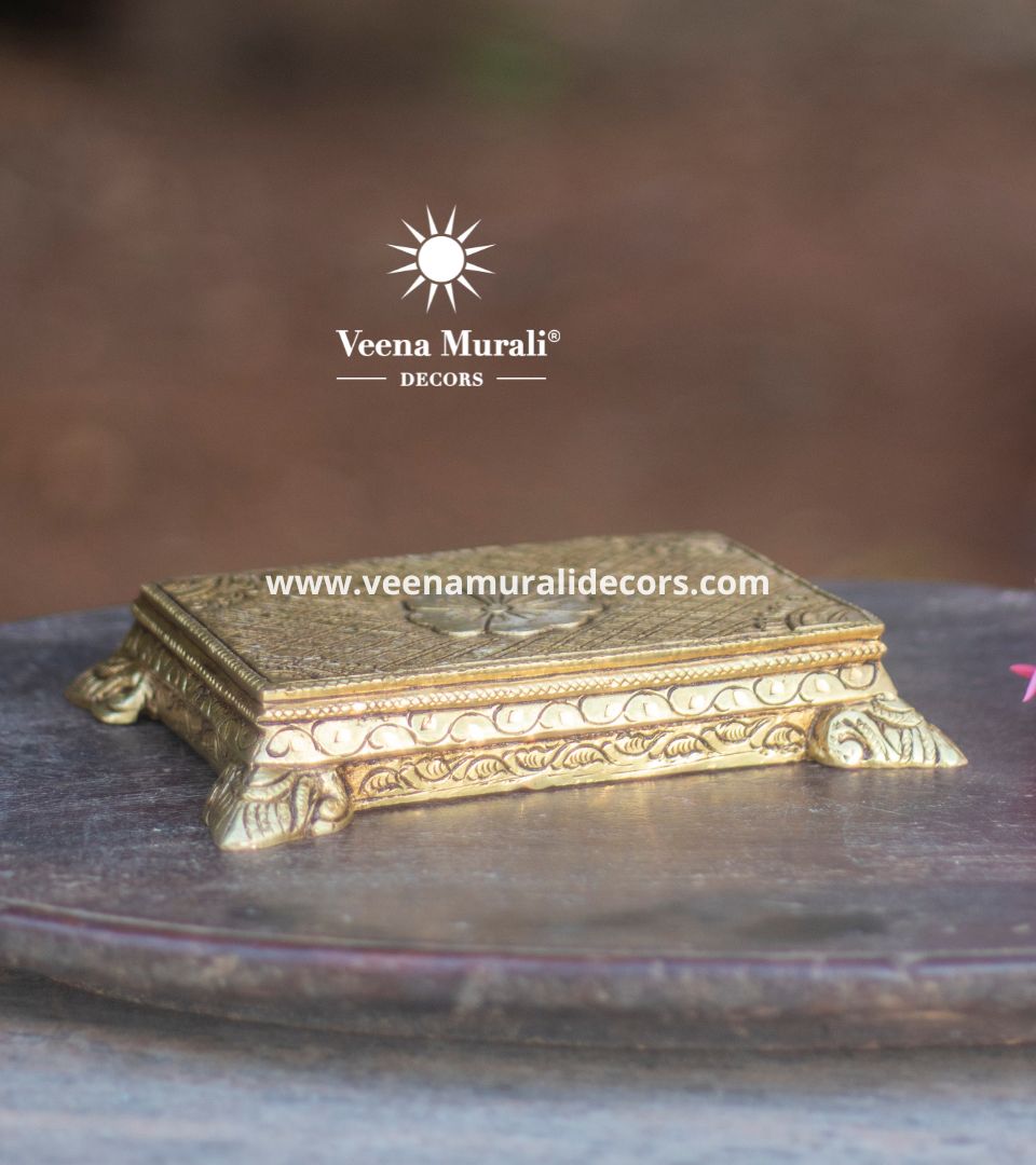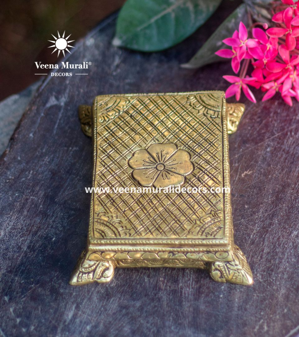 6.2-inch brass chowki with traditional design, ideal for placing idols, lamps, or decor during pooja. Shining brass finish adds elegance and spiritual charm.