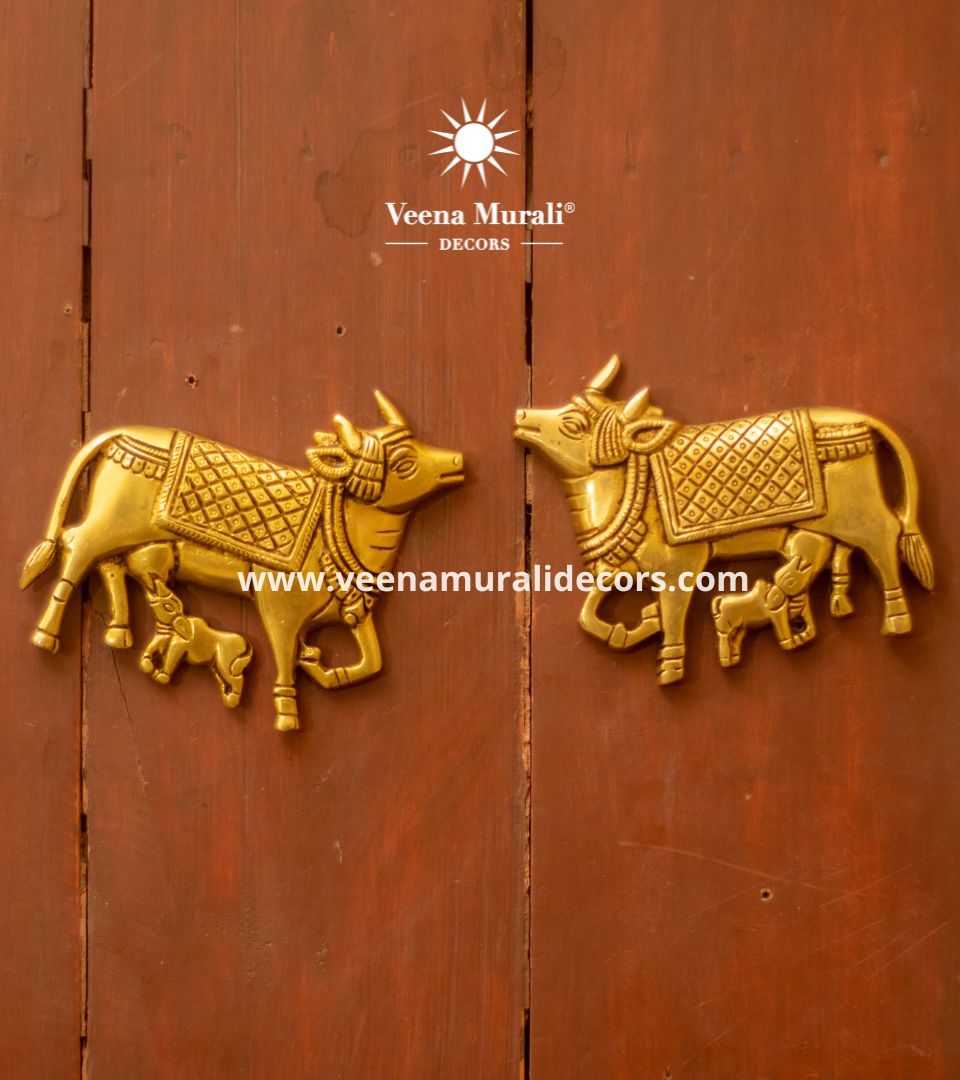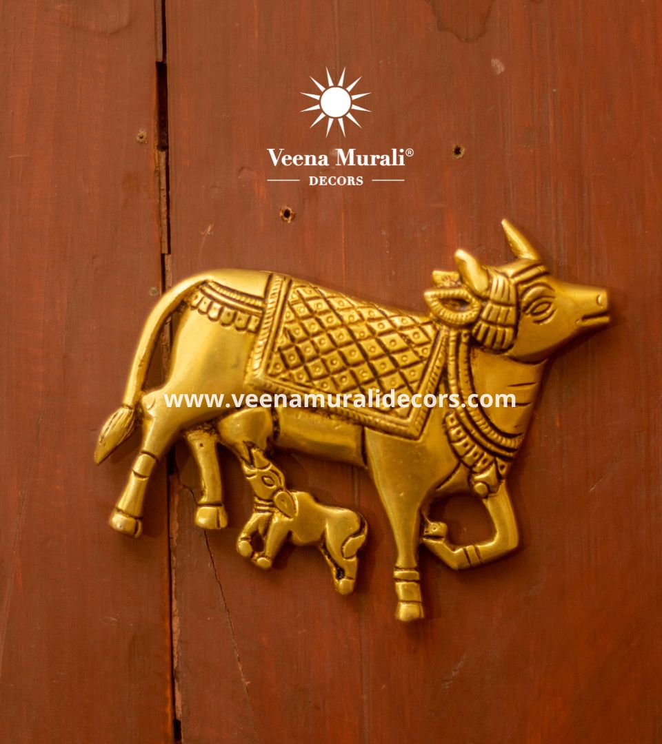 A heartfelt depiction of a cow with her calf, this elegant wall hanging symbolizes nurturing, protection, and divine love. Perfect for adding warmth and cultural charm to your interiors.