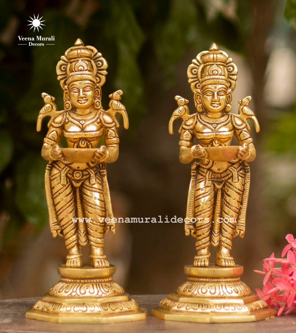 The Traditional Paavai Vilakku, a brass standing lady with a lamp, symbolizes the removal of ignorance through light, highlighting knowledge as the greatest form of wealth, and is used to commence all auspicious functions