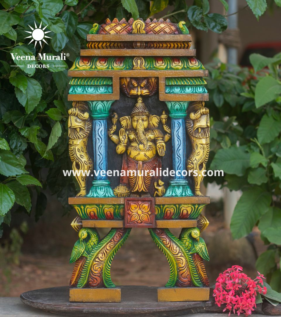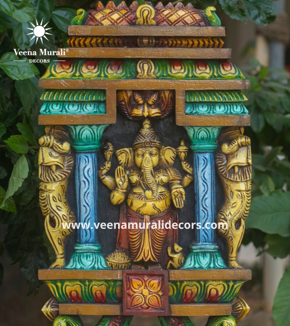 The "Drishti Ganesha" wood wall hanging is a beautifully crafted piece designed to ward off negative energies while adding a touch of traditional elegance to any space