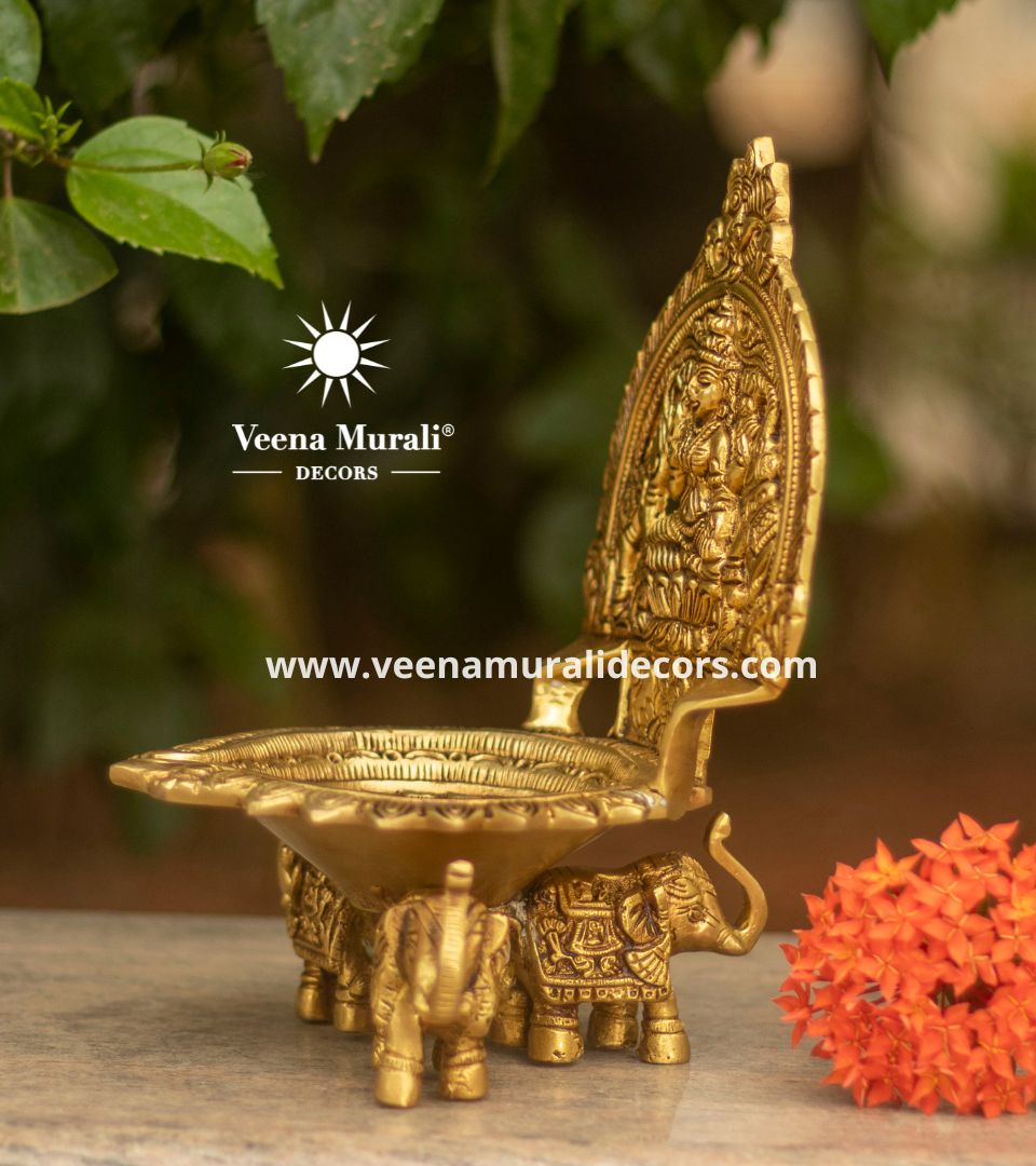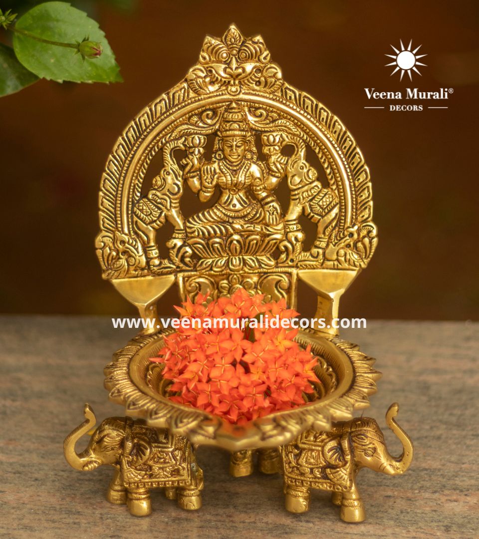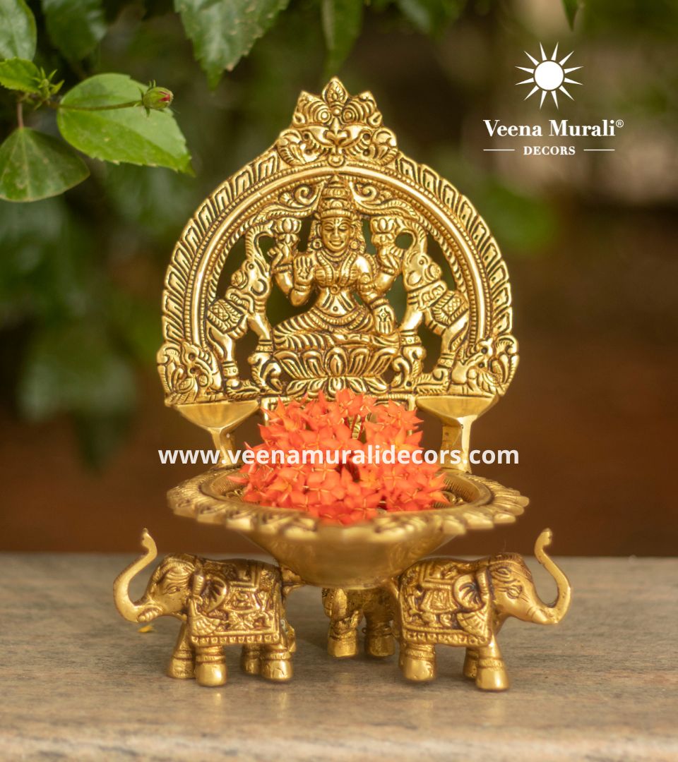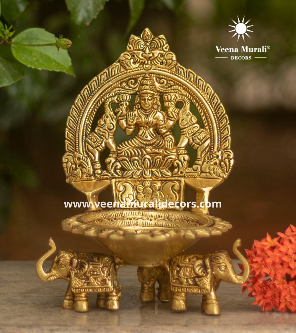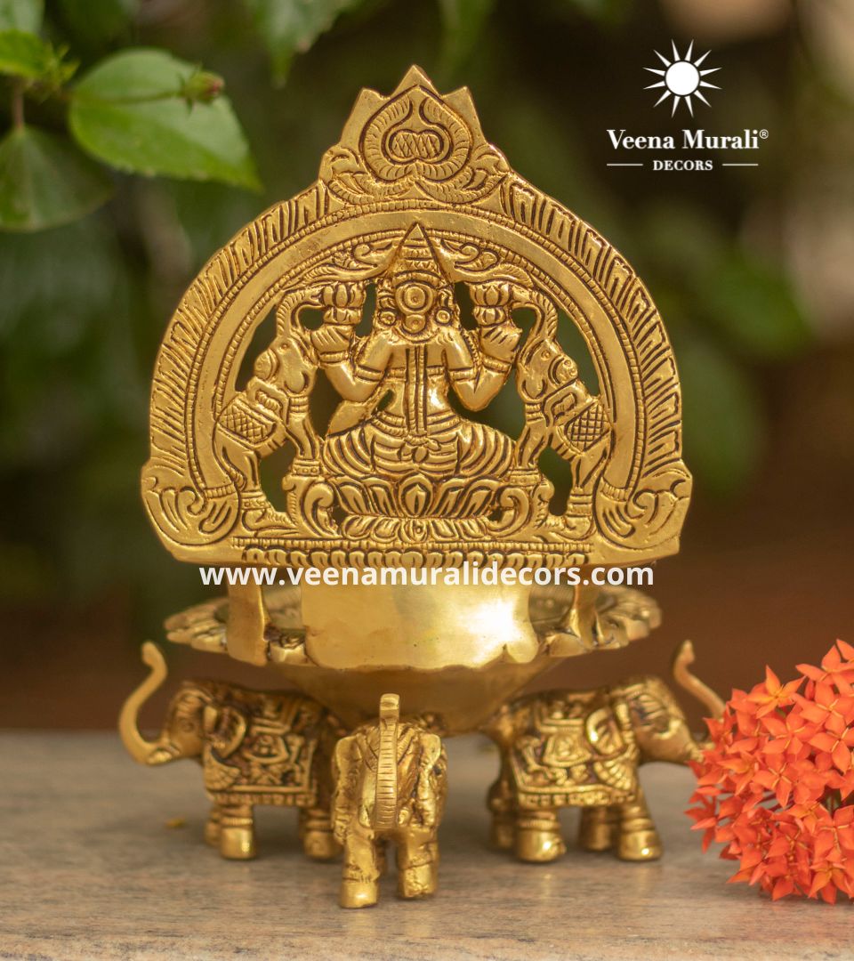 Gajalakshmi Lamp, depicting Goddess Lakshmi with elephants, symbolizes prosperity and protection—ideal for festive decor or gifting.