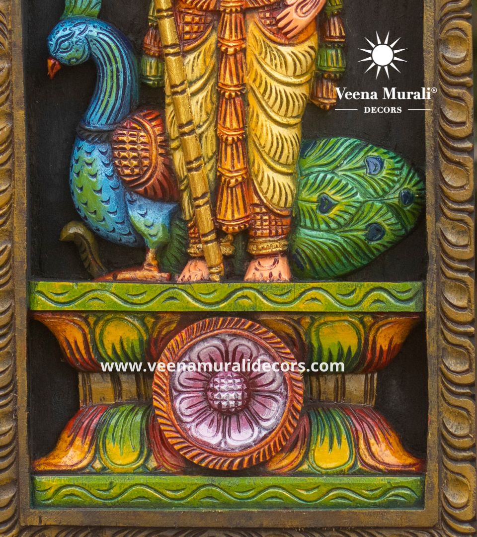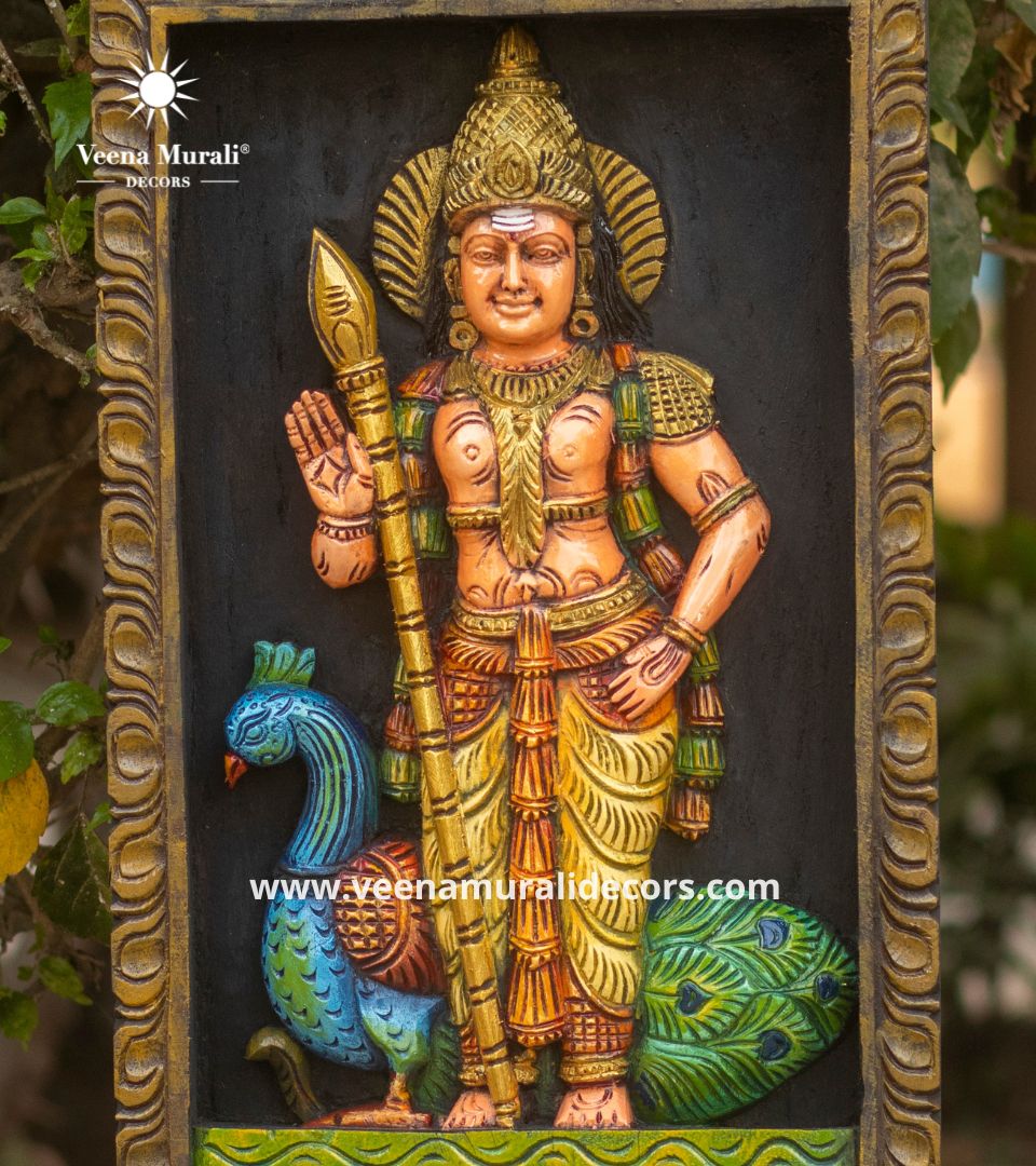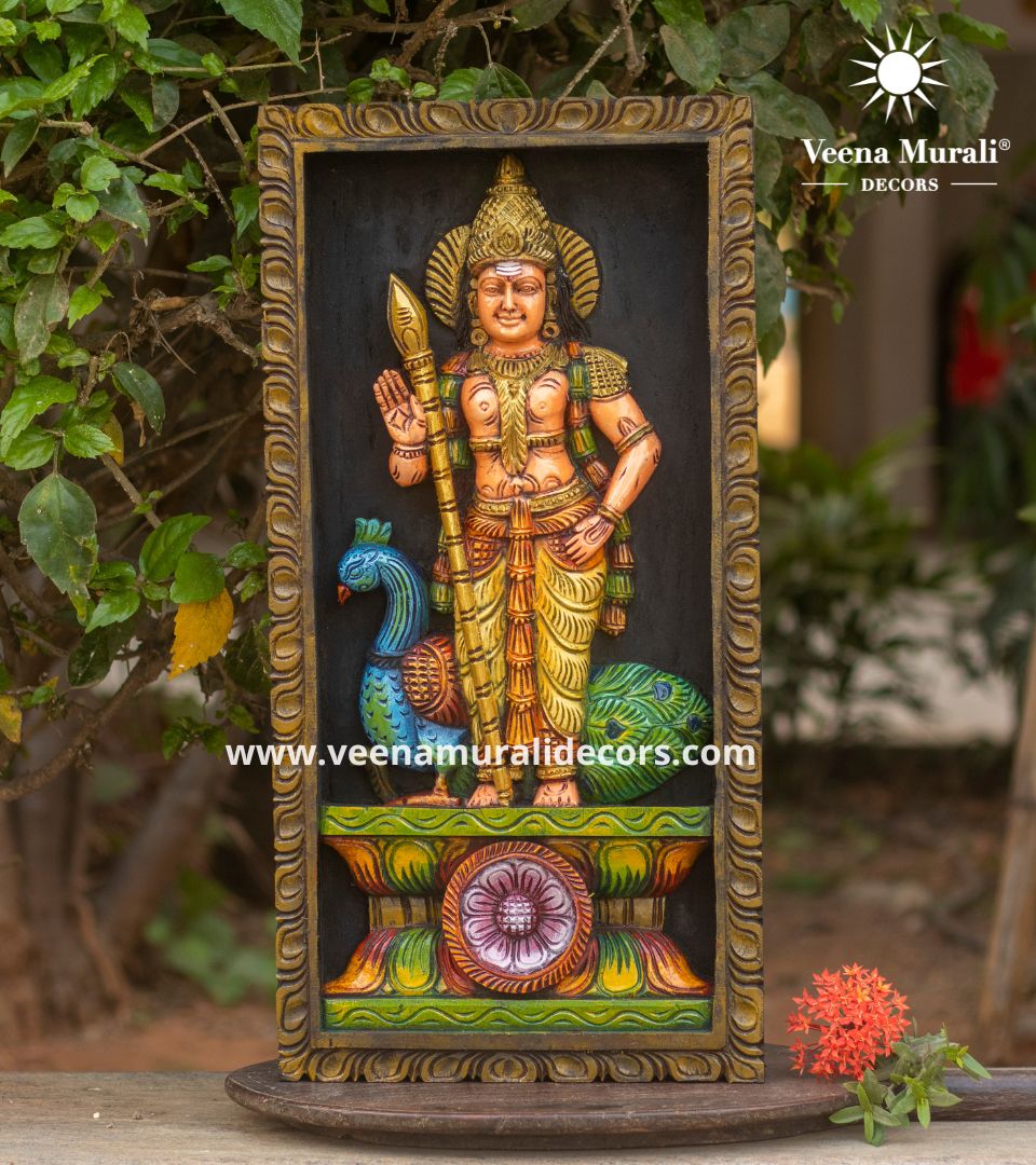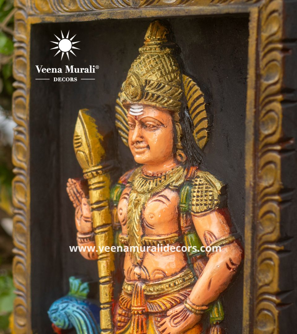 2 foot Muruga wooden wall hanging, beautifully crafted for pooja rooms and spiritual spaces. An elegant decor piece that adds divine grace and traditional charm to your home.
