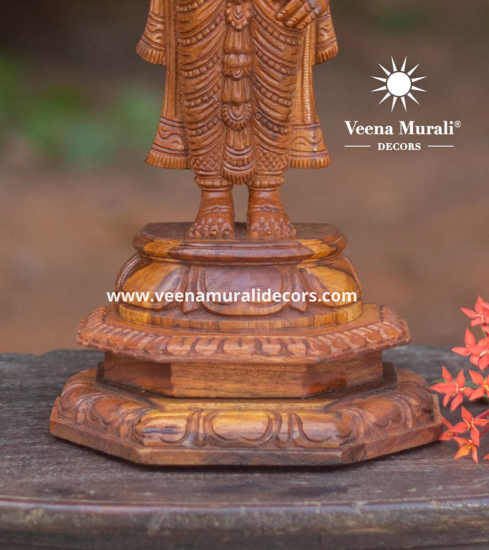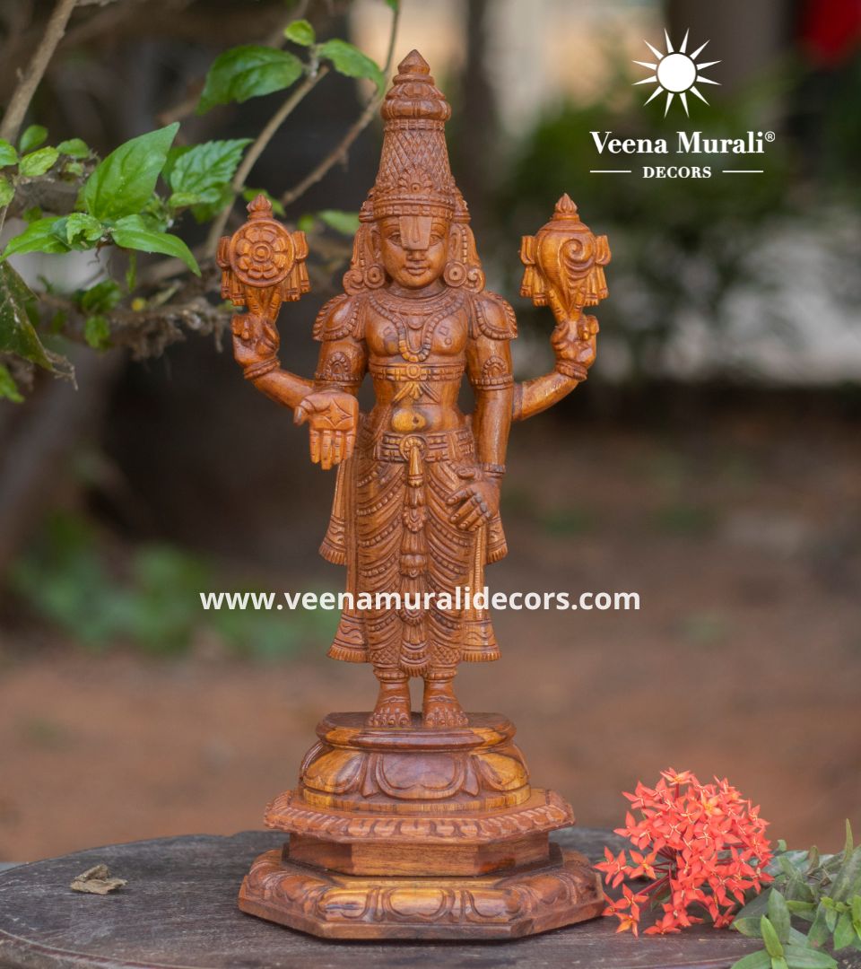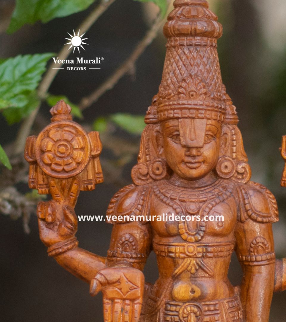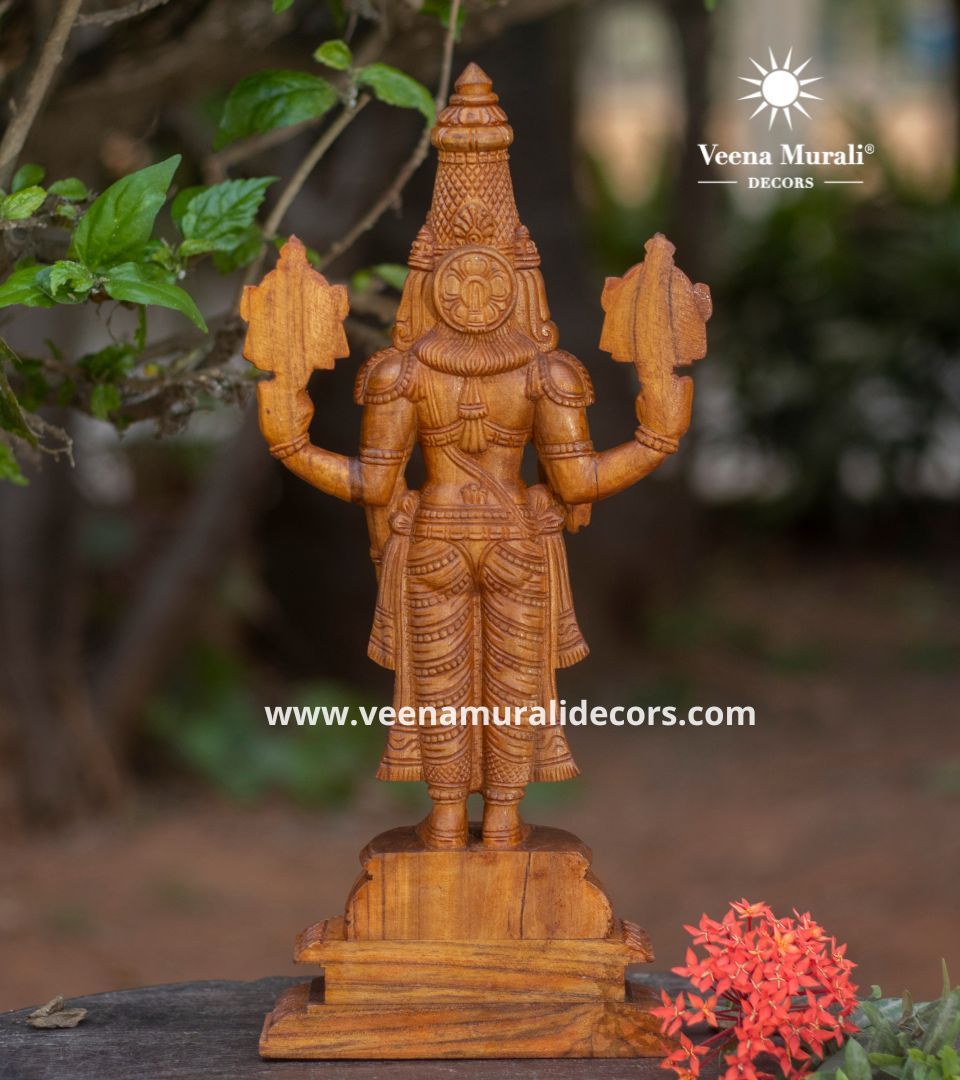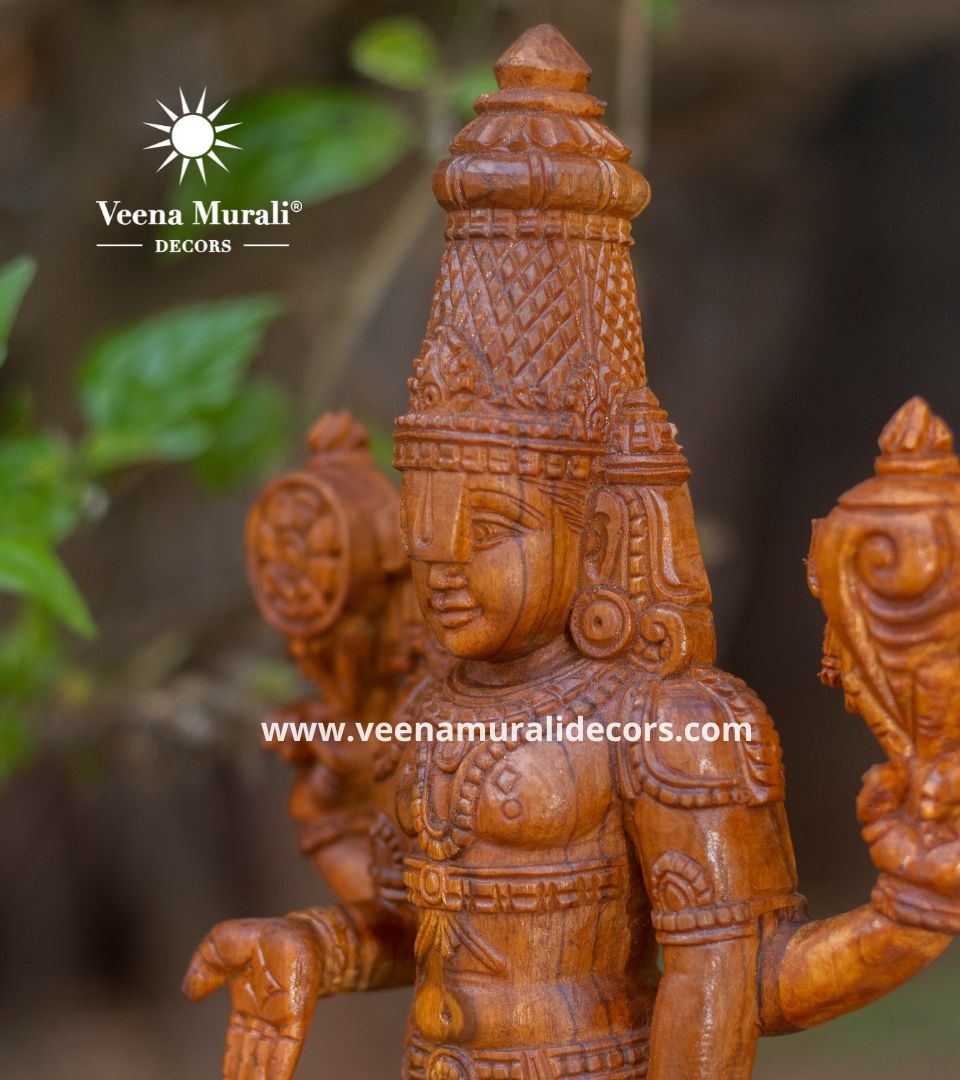 Hand carved Wooden Balaji idol depicting Lord Venkateswara, crafted from wood ideal for pooja rooms, gifting, or adding a sacred touch to your decor.