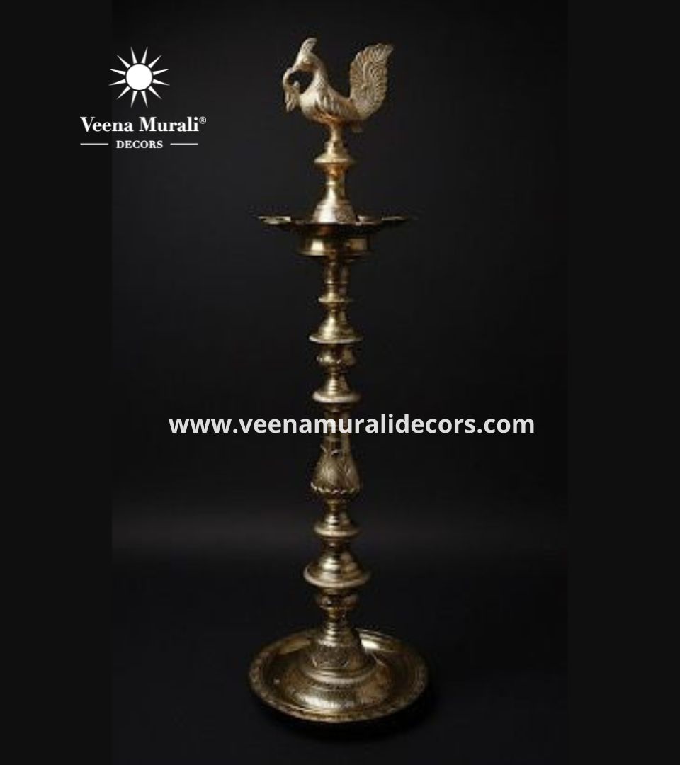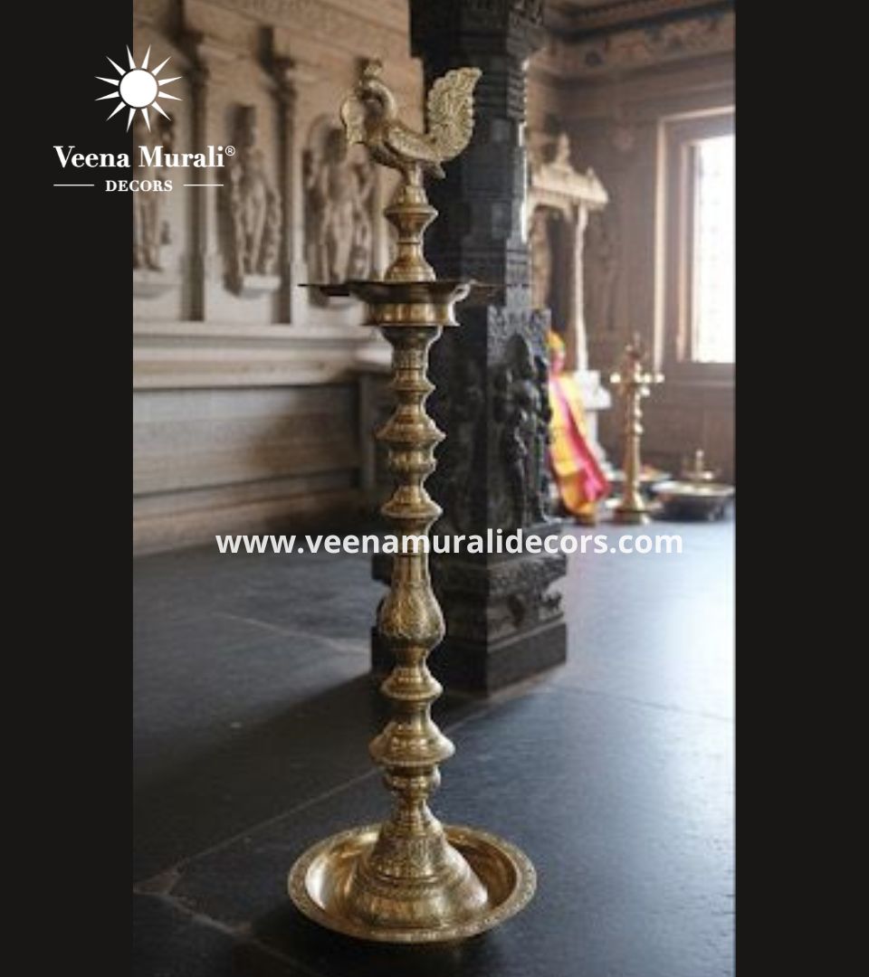The 2-foot Nachiyar Koil Lamp is a handcrafted South Indian brass lamp, ideal for rituals and festivals, symbolizing prosperity, light, and heritage.
