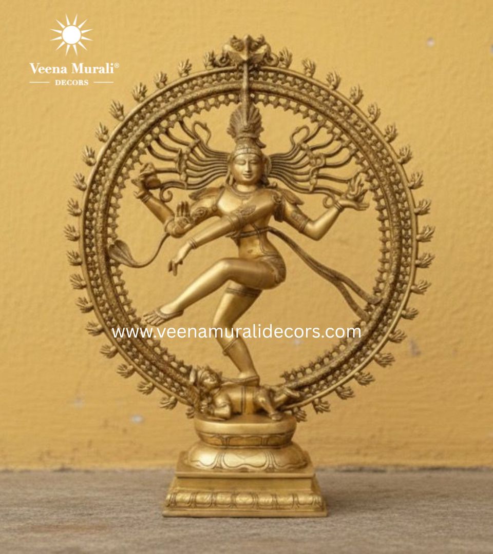 37-Inch Nataraja Statue, handcrafted in brass, depicts Lord Shiva’s cosmic dance symbolizing creation, preservation, and destruction. A powerful piece for temples, pooja rooms, or traditional decor.