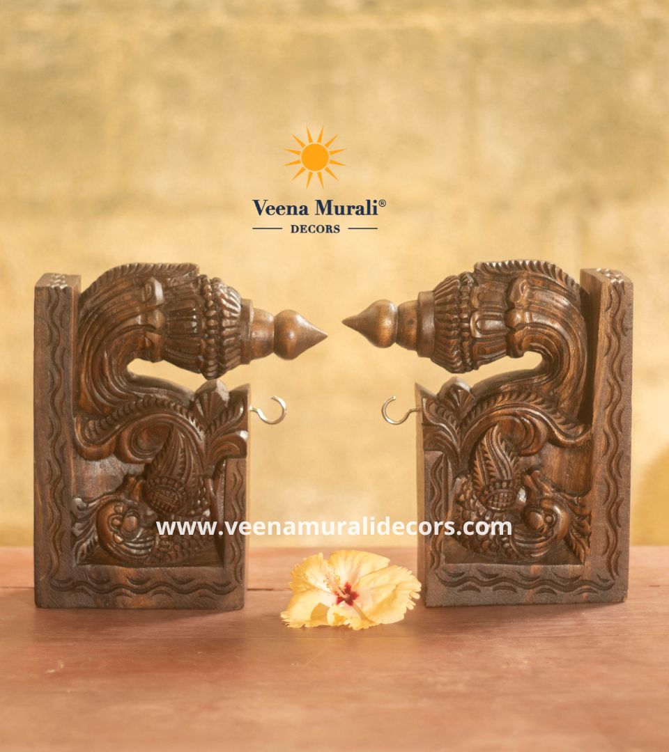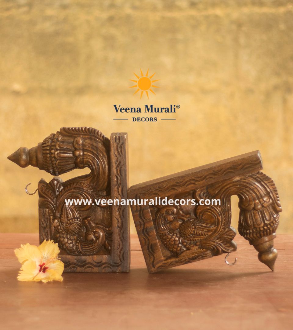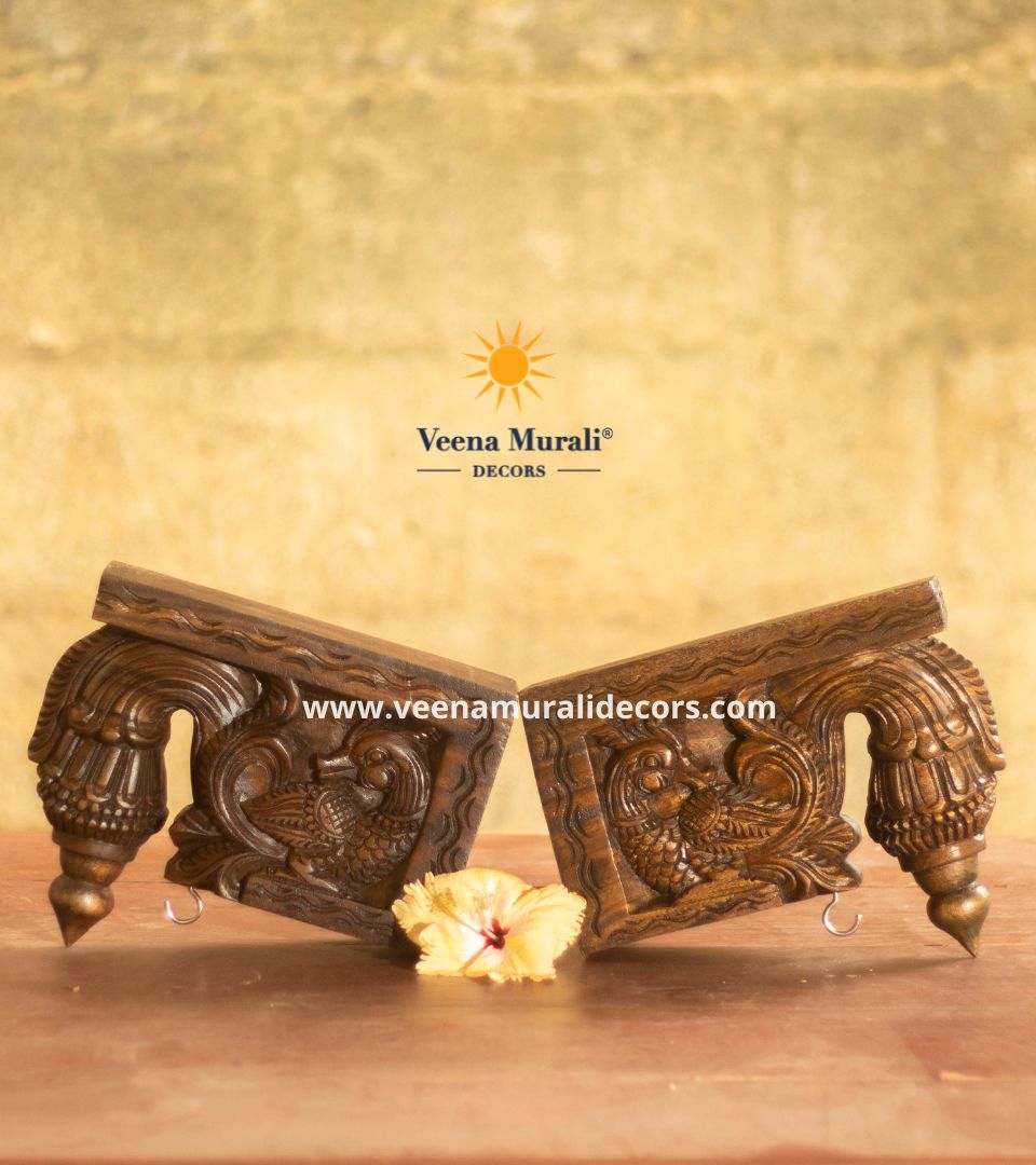 Grace your interiors with this exquisitely carved Peacock Bracket Pair. A blend of traditional charm and craftsmanship, perfect for entrances, pillars, or pooja corners.