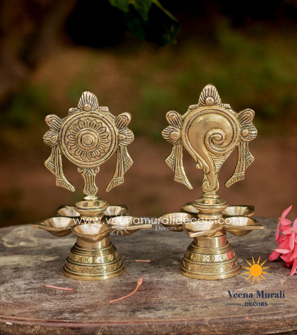 Shankh(Conch) and Chakra(Divine Wheel of Power) are symbolic of Lord Vishnu's Power & Divinity. This figure is believed to bring calm and peace where they are placed. They repel negative energy and attract positive vibes. The symbols has made on lamps beautifully. Ideal to place it around your home, living room, Pooja, yoga room or meditation room