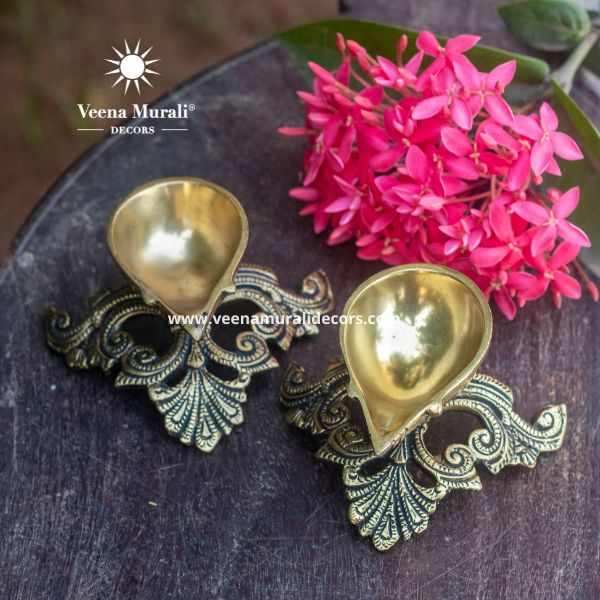 Leaf Diya with Flower Base (Pair) Out of Stock
