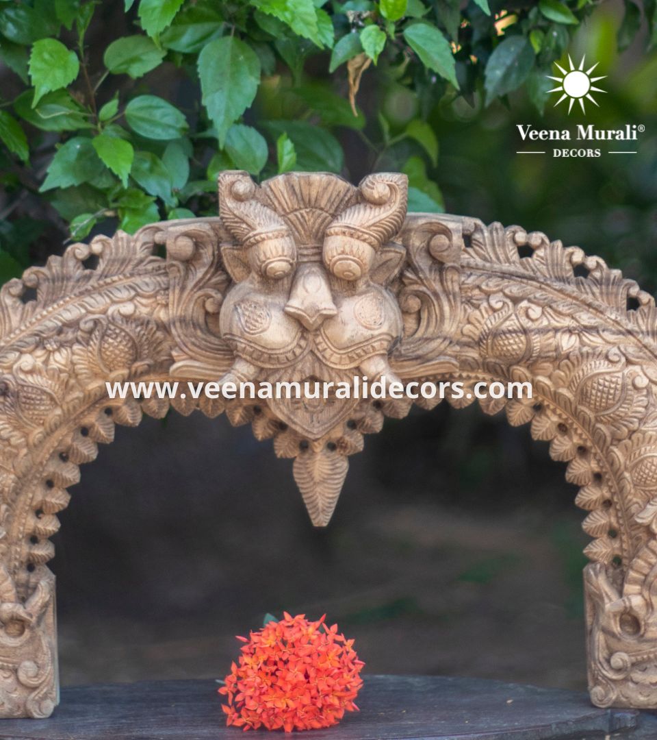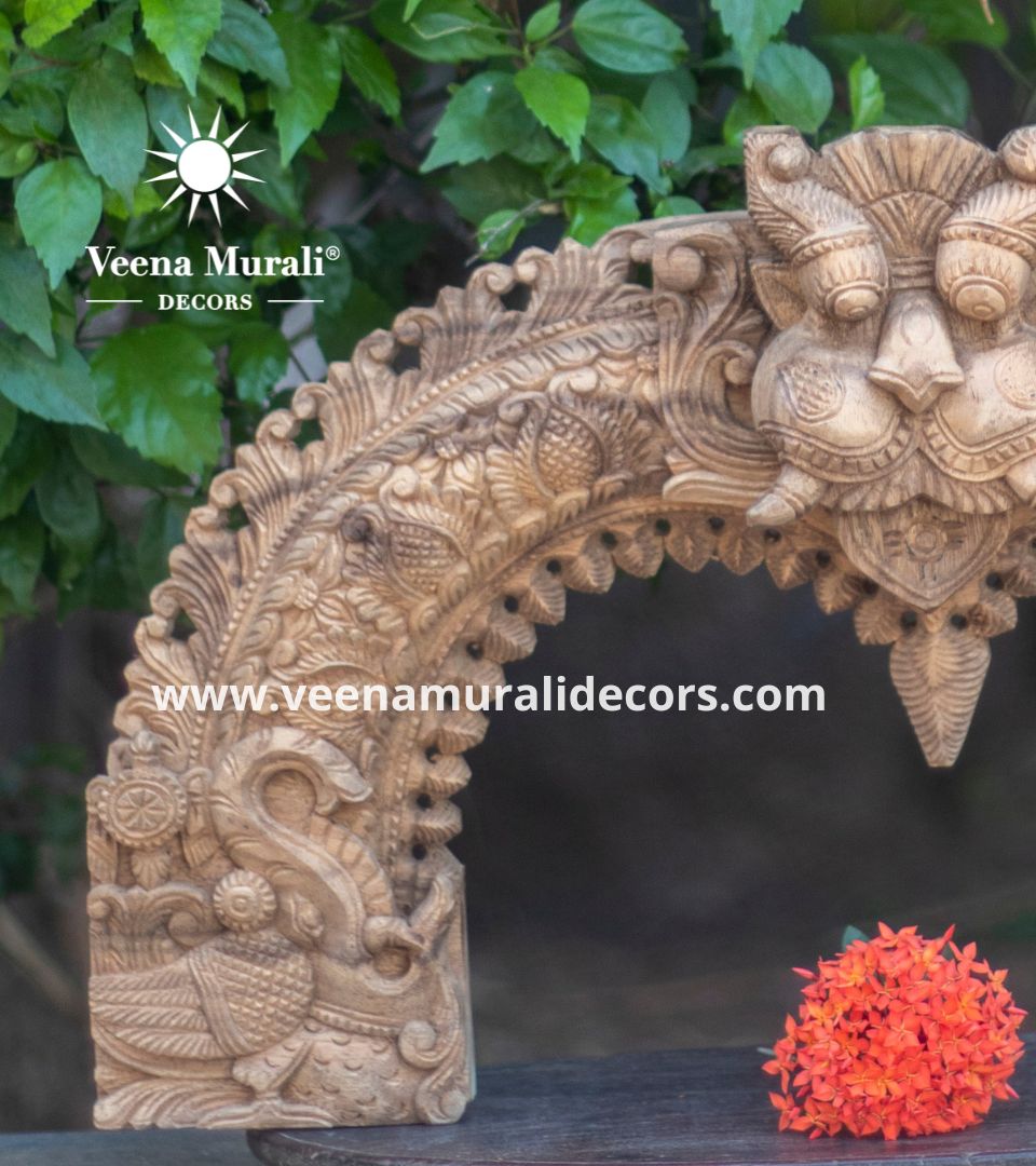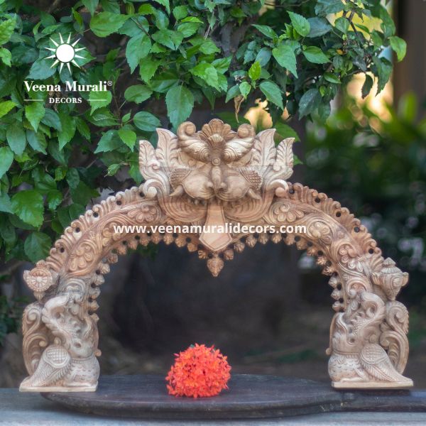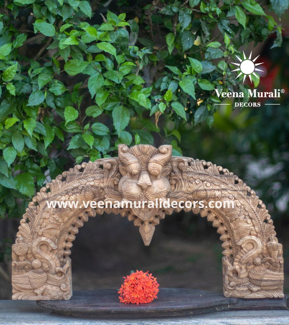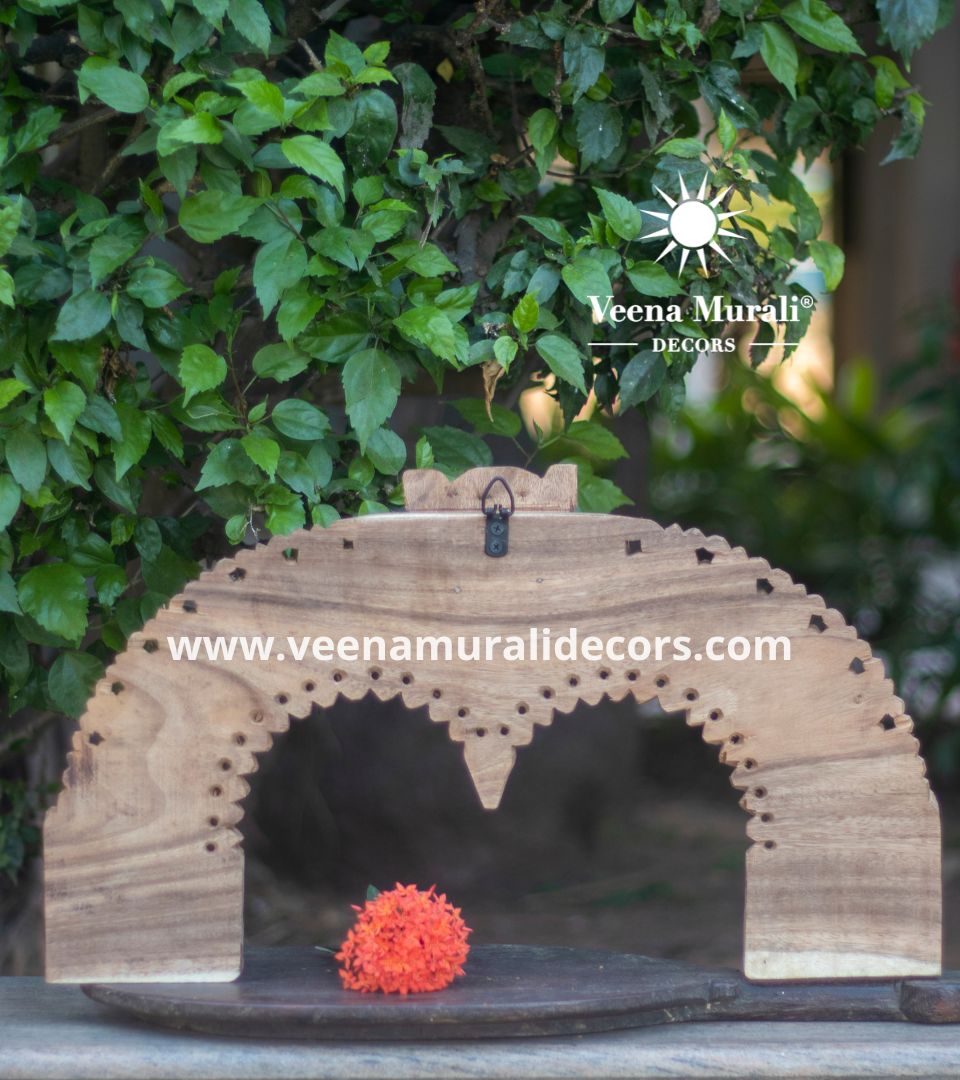 A Wooden Prabhavali Wall Hanging is a traditional decorative arch inspired by temple designs, crafted with intricate carvings. Perfect for pooja rooms or living spaces, it brings a spiritual and artistic charm to your home decor.